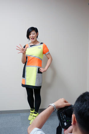 前日に行われたグリーンドリンクス石巻のようなイベントに参加することで、地域の方々と直接コミニケーションして、おもいやりライトを深く理解してもらう機会も貴重ではありますが、メディアの力をお借りできれば、もっともっと多くの方におもいやりライト運動を知ってもらうことができます。せっかく東北を訪問しているこのタイミングで、私たちが被災地にこそ必須だと感じているヘッドライト早期点灯や明るい衣服の着用を、地域の方々に促してくださるメディアさんはいないだろうか? そんな願いに快く協力してくださったのが、河北新報社さんだったのです。丁寧にご取材くださり、取材の翌朝にはばっちりポージングを決めたライティング・ガールの写真が、おもいやりリライト運動を伝える記事とともに誌面を飾りました。